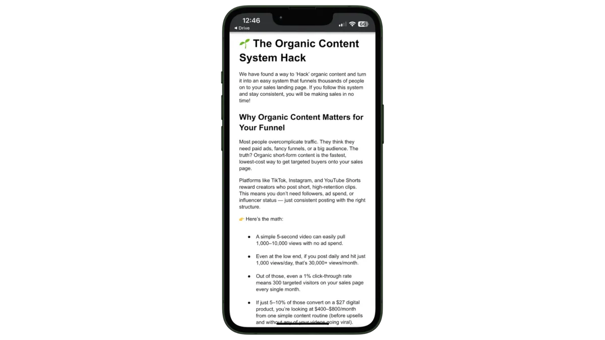 BONUS #1: 90-Day Organic Content System: A proven plug-and-play calendar with viral hooks, faceless video templates, and posting strategy to drive free traffic on TikTok, IG, and beyond.